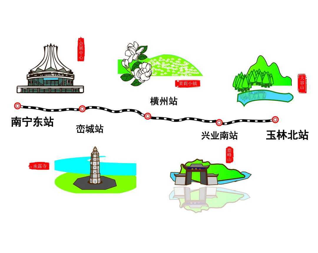 锃亮的铁轨从南宁东站延伸出来,在八桂大地的壮美山水间划出一条优美的弧线,跨越丰润的郁江河畔,途经茉莉飘香的横州旷野,蜿蜒向东直抵广西最大、全国著名的侨乡玉林……