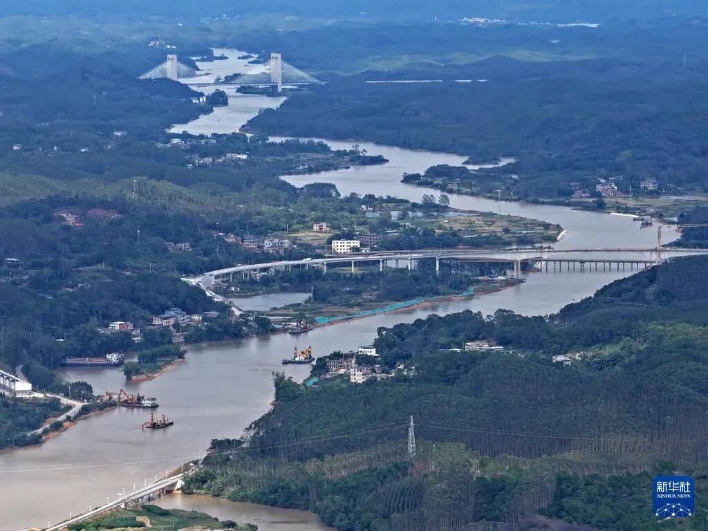 平塘江口,两山夹水,西江水缓缓流入运河。这里是平陆运河的起点,抬眼望去,水面平阔、边坡齐整。“截至目前,标段航道开挖超97%,护岸防护率达80%,通水约18公里,已进入全面收尾阶段。”中交广航局平陆运河项目负责人莫日雄表示。