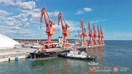 一艘从非洲莫桑比克贝拉港启运、载有9200吨锂精矿的货轮直抵玉林海港码头并顺利完成接卸。(资料图片)